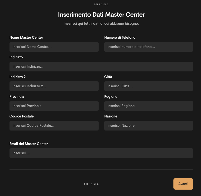 - Creazione di un nuovo Centro Master
