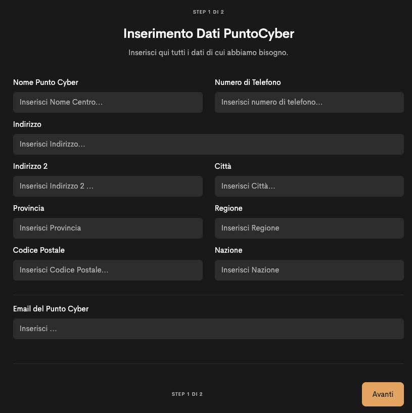 Cliccando su “Crea PuntoCyber” si inserisce il nuovo centro PuntoCyber nel sistema.